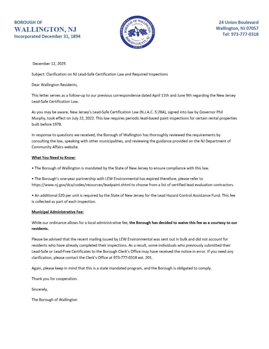 Clarification on NJ Lead-Safe Certification Law and Required Inspections
